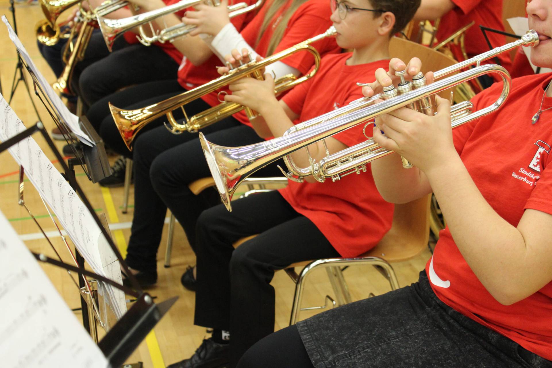 Jugendliche lernen schon früh, neben dem Musikunterricht auch in der Gruppe zu spielen. Der weitere Einstieg in die Jugendkapelle wird erleichtert.