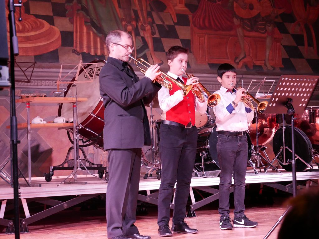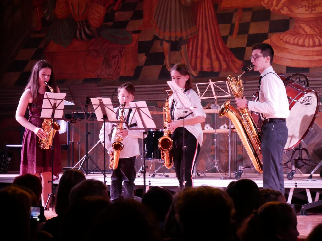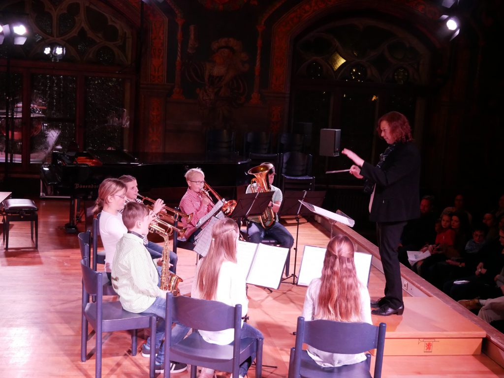 Die Grundlage der Musikausbildung ist das Musizieren alleine, zu zweit und in kleinen Gruppen. Ziel eines Schülerkonzertes ist deshalb das Sammeln von Erfahrungen, nicht vordergründig die Perfektion. Besonders im Umgang mit sich und dem Instrument. Ob nun die beiden Klarinettistinnen oder die Trompeten sowohl im Trio wie im Quartett. Ein Auftritte, bei dem zum Soloinstrument Bariton noch eine Klavierbegleitung dazu kam. Oder das anschließende gemischte Blechbläserquartett und die beiden jazzig-schmissigen Saxophondarbietungen. Allen Musizierenden sei Respekt und echte Anerkennung für die musikalisch schon recht reifen Leistungen gezollt. Gleichermaßen. Ohne Unterschied in der Auswahl der Stücke, des Alters oder des Instruments. Erwähnt sollen jedoch einmal die Instrumentalausbilder sein: Christian Stephan, Jonas Sembdner, Peter Weber, Nina und Mathias Engl sowie Anna Weiningner. Und nicht zu vergessen, ein Lob auch an die Eltern. Für die der häusliche Satz „..hast Du heute schon geübt?“ sicher ebenso anstrengend ist wie für die dafür zuständigen Kinder und Jugendlichen.