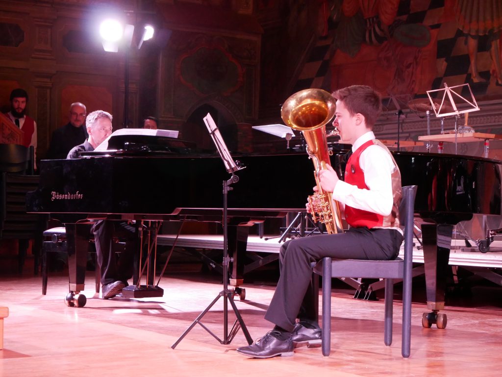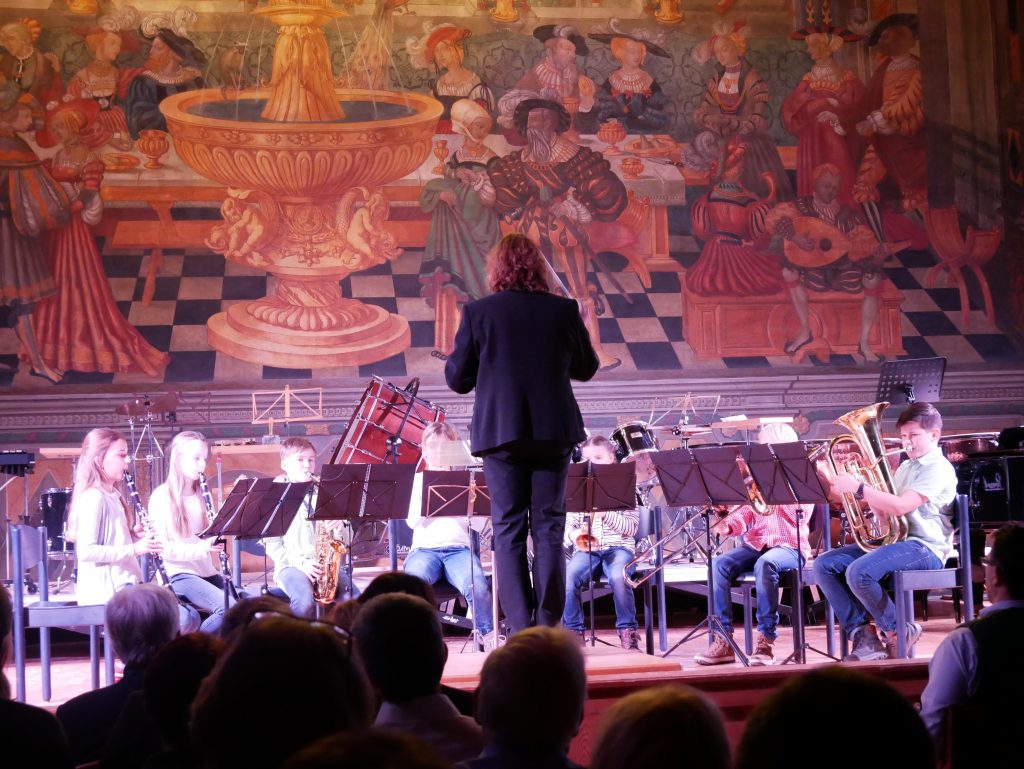 Wasserburg – Großes Gedränge herrschte im Treppenhaus des Wasserburger Rathauses vor Konzertbeginn. Denn natürlich war das Konzert wie immer gut besucht. Eltern, Geschwistern und Omas und Opas sowieso lassen sich diesen ersten Auftritt eines jungen Künstlers aus der Familie nicht entgehen. Das Lampenfieber war nicht mehr steigerbar. Stadtkapellmeister Michael Kummer konnte dies in seiner Begrüßung gleich wieder vergessen machen und führte mit Geschichten und Informationen durch das Programm. Das beruhigte dann die Nervosität.