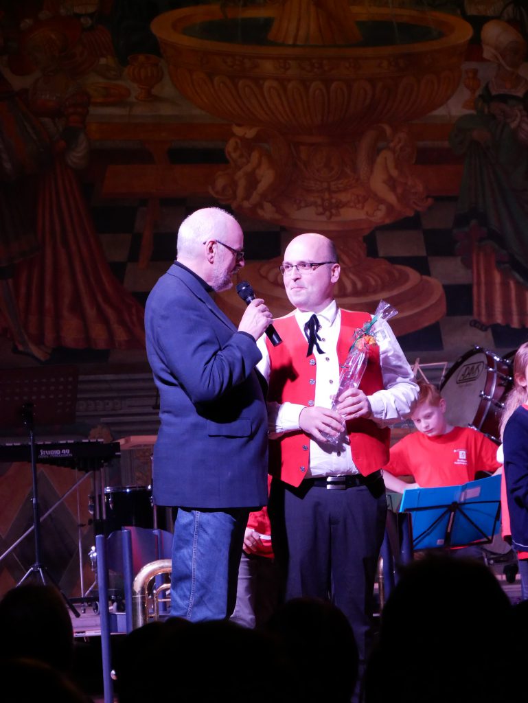 Vielleicht war die vorhergehende sichtbare Anerkennung für erbrachte Leistungen ein Ansporn für die Bläserklasse der Grundschule gleich nach der Pause mit ihrem Leiter Peter Weber. Spielend und „aus vollem Munde“ singend sprang hier der Funke der Begeisterung über. Musik, irgendwie schon fast der orffschen Schulmusik verwandt, hocherfreut musiziert auf Blasinstrumenten und Schlagwerk. Eine wahre Freude für das ebenso gut aufgelegte Publikum.